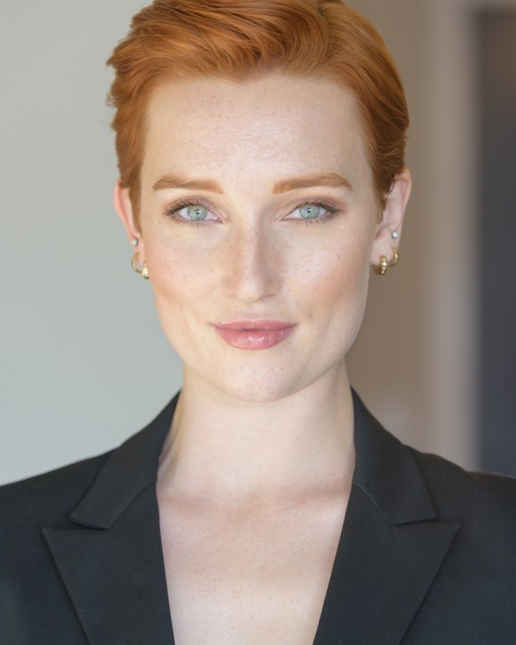 Current headshots are of a short, red, pixie cut as of January 2021.